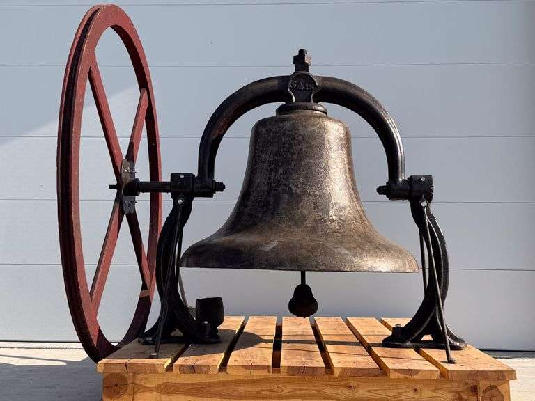 WOW! What can we say? This is an EXTREMELY RARE bell with it's size weighs over 2800 lbs and has an AWESOME tone. Comes with original wheel standing over 6' tall. Comes out of a Methodist church in Northern Iowa. WHAT AN OPPORTUNITY!!!!!