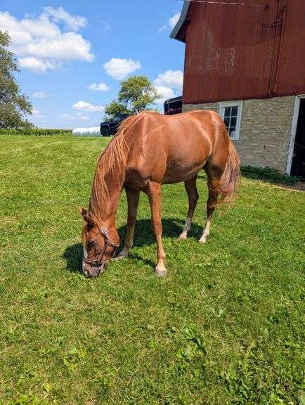 Ruby is a 3 year old Quarter horse Sorrel mare with 2 white socks, She is a very gentle horse, rides nice and was born on my farm.
