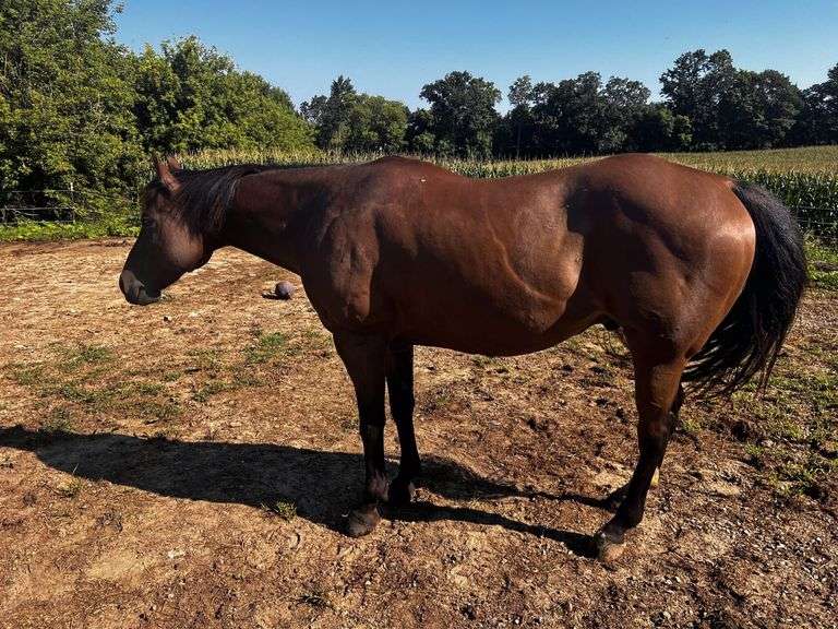 DT Skip Away Lark, a 11 year old Bay Quarter Horse Gelding. Stands 14.3 handsReg #56122838Bishop has been used on a working ranch. He is well trained and is a seasoned trail horse. He stands 14.3 hands and is well muscled. Bishop has a sweet personality and is easy to catch and saddle.