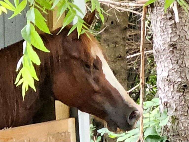 Reggie is a big beautiful sorrel gelding. He rides really nice walk trot lope. With a little time he'd make a great kids horse for 4-H. He'd definitely get you the blue ribbons. He's straight legged front and back. A halter horse that you can ride. He's really friendly and sweet. He'll whinny when you come home from work. He does have some arthritis in his back right hock, so I can't sell him sound but he is definitely rideable and it doesn't seem to bother him. So if your looking for a nice 4-H project or just something to ride around and look really, really great doing it, then he's your guy.