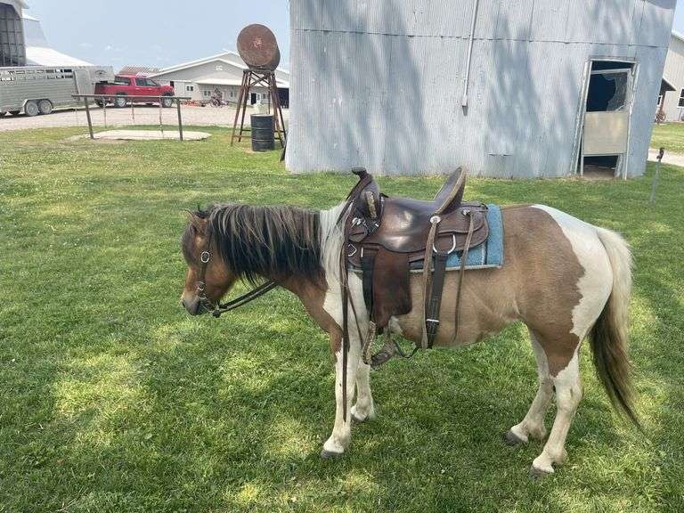 Twinkles is a 6 y/o buckskin/white paint mare pony. She is 46" tall. She is broke to ride and drive single and double. She is very quiet, gentle, and easy to catch. She is bred to Icon, a red roan gypsy stallion. Her current colt will sell at this sale too.