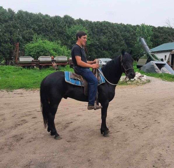 Edge, a grade 5 year old black Pony gelding. Stands approx 54". Exceptional pony could be used in any discipline: ride, drive, event, or jump. Very smart. Willing. Big foot, good leg, big motor. Home raised, 1/4 Fell, 1/4 Shetland Welsh, 1/2 registered Hackney. 120 days of ride training. Driving by sale date. Super cool, good looking pony! Needs a job. Don’t miss this one!