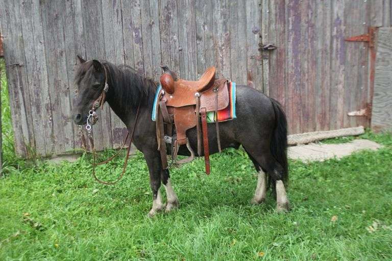 Sparky is a 10 year old black miniature pony gelding, with four white socks and a few small white markings on the body. Stands approx 38". Sparky has been on a lot of trail rides and is traffic broke. Check him out.