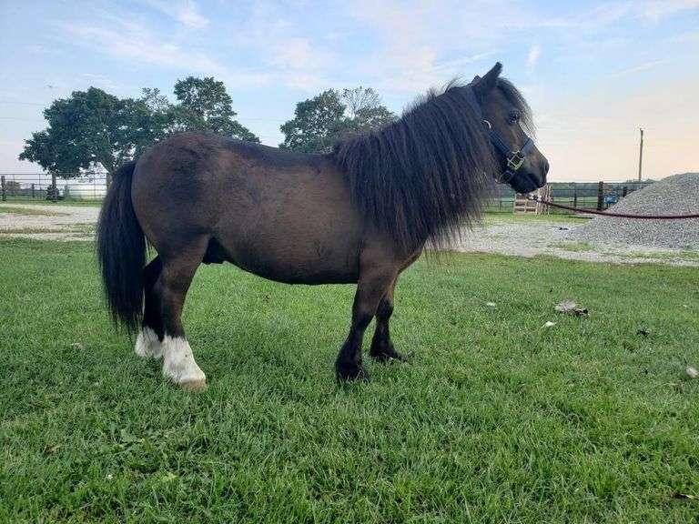 Too Tall is a Miniature black gelding that stands 28" tall. He is a true dwarf and is broke to ride and drive. Traffic broke. Too Tall is like a puppy dog and the kids absolutely love him He is a rare find...do not miss him.