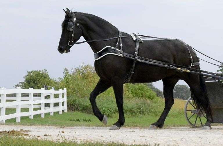 Beauty is a 10 year old black Friesian/Percheron cross mare. Stands approx. 15.3 hands. She is well broke to ride and drive single and double either side and is traffic broke. Very well broke!
