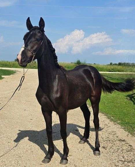 Draco's Little Porsche Fan Whiskey, a Yearling Smokey Black Pinto Friesian Sporthorse Filly, stands approx 14 hands as a yearling Sire: Draco FHH reg 5036-2009F, FPS reg #8400042009031, stands approx 15.2 hands Dam: Bonita's Whiskey Rain, a grade buckskin pinto with blue eyes, stands approx 14 hands Porsche is trained in halter, trailering, stands tied and basic foundation work is done. A very elegant, sharp looking filly. She'd stand out in style in a cart, make an outstanding jumper, trail horse or potential mare for future breeding to your purebred Friesian stallions. She could possible produce color, your gain healthy 75% Friesian foals. Her dam has produced 2 outstanding colts, one dun a dun-skin. She is kind and well mannered, don't miss this beauty!