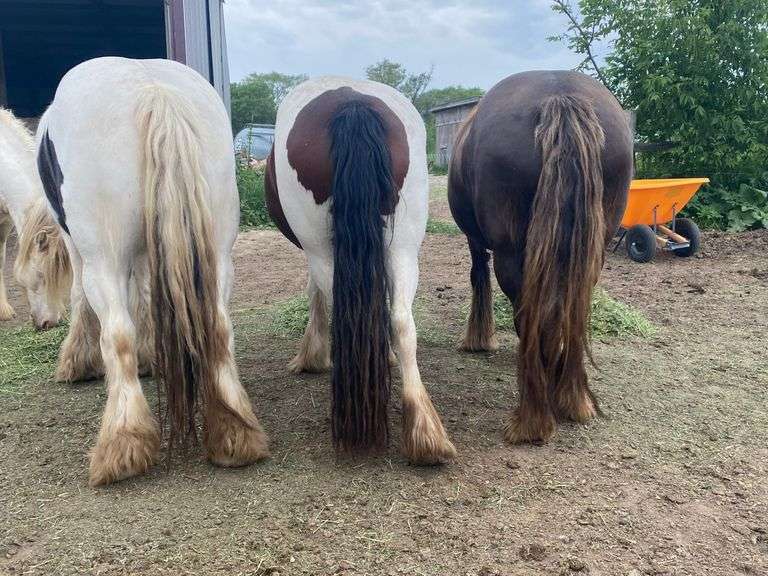 NRSV Leo’s Colorado Dream 2017 black tobiano mare GVHS registered, pssm1 negative 15.1hh “Biscuit” is currently in training with Rudy and Samuel Schwartz, she is broke to ride, can side pass, open and close gates off her, soft in the bridle and has a nice stop. Still considered green, so not for beginners. She is broke to drive, she can go single into town or be on a team hooked to farm machinery. She is an excellent mother, and has had two very nice big foals,if you are looking to add size to your herd she can do it! Very nice mare to be around, doesn’t mind being alone, good in box stalls, excellent to haul, good for baths etc. She is excellent for all vet work, usually very good for the farrier but can step around doing her back feet once in a while, take it slow so she knows what you are asking and she’s fine. If you are looking for a big registered Gypsy vanner mare with good old bloodlines, here she is! Add her as a broodmare, give her more time under saddle to be an amazing riding horse or use her to drive, haul a load of manure, take her through a parade, or give wagon rides!