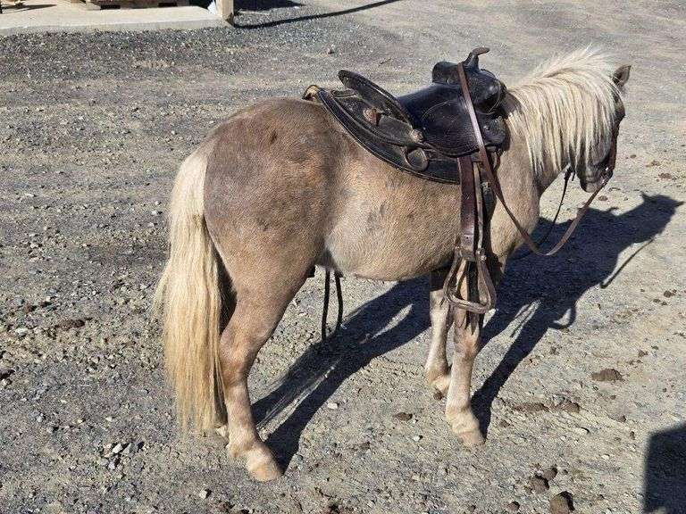 Silver is a 3 year old pony, gray with white mane and tail, stallion. He is broke to drive single, double, on either side, rides and is traffic broke. He is well started.